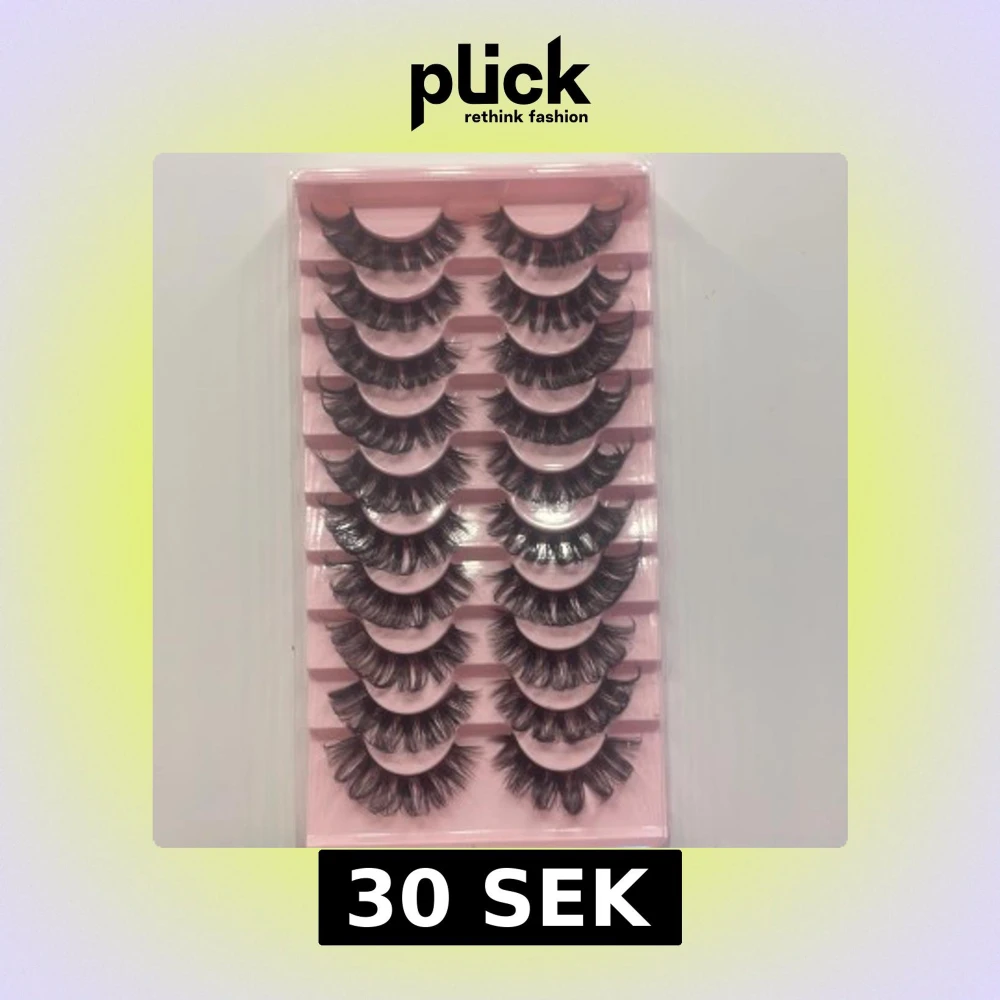 Säljer ett 10-pack svarta lösögonfransar med dramatisk volym och fluffig design. Fransarna har en böjd form och levereras i en rosa förpackning. Perfekta för att skapa en intensiv blick och extra wow-effekt. Fransarna är i D curl🤍🤍.