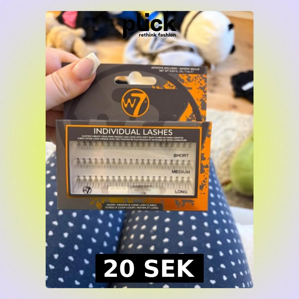 Säljer ett paket W7 Individual Lashes med lösögonfransar i tre olika längder: kort, medium och lång. Fransarna är svarta och kommer i separata knippen för att skapa en personlig look. Lim medföljer i förpackningen.