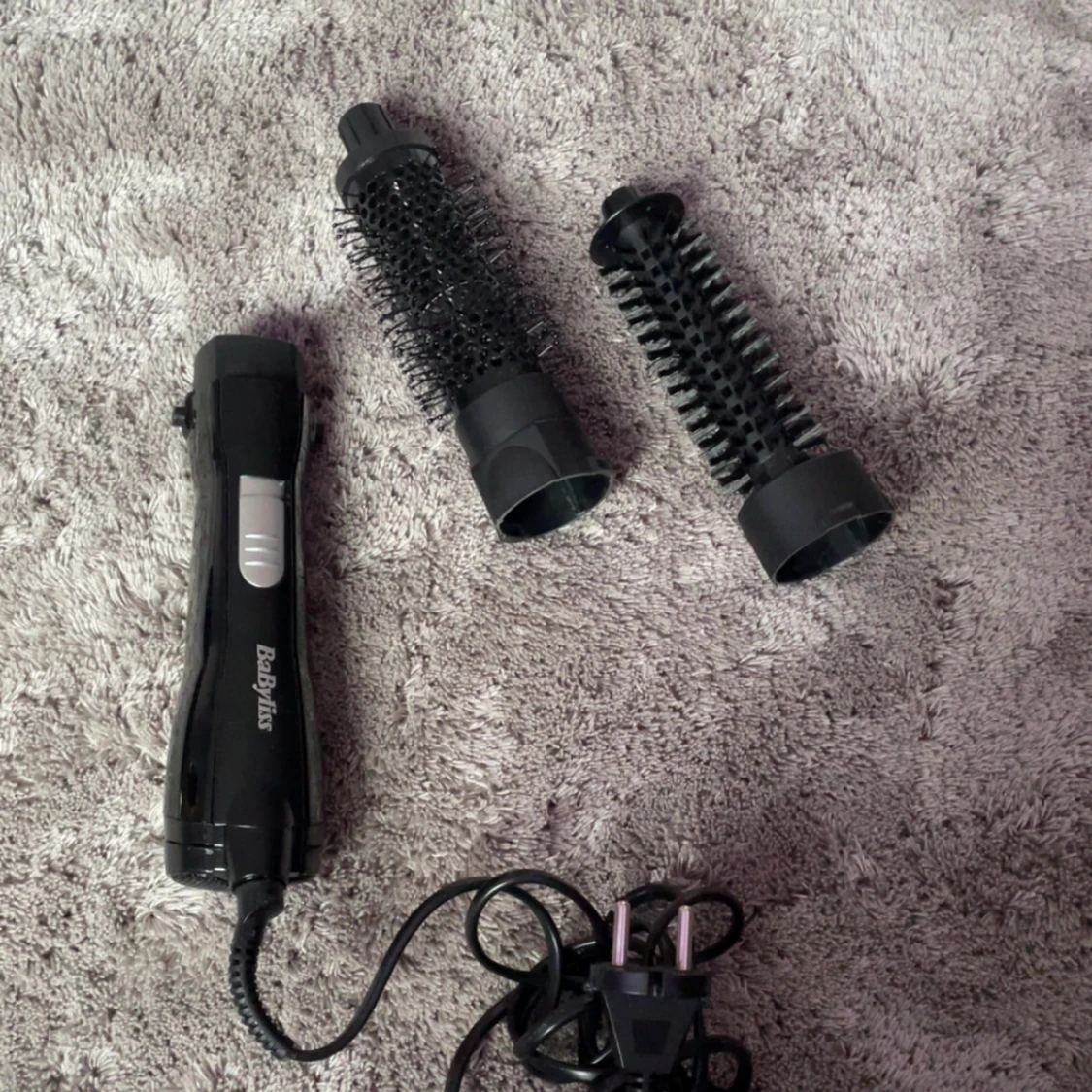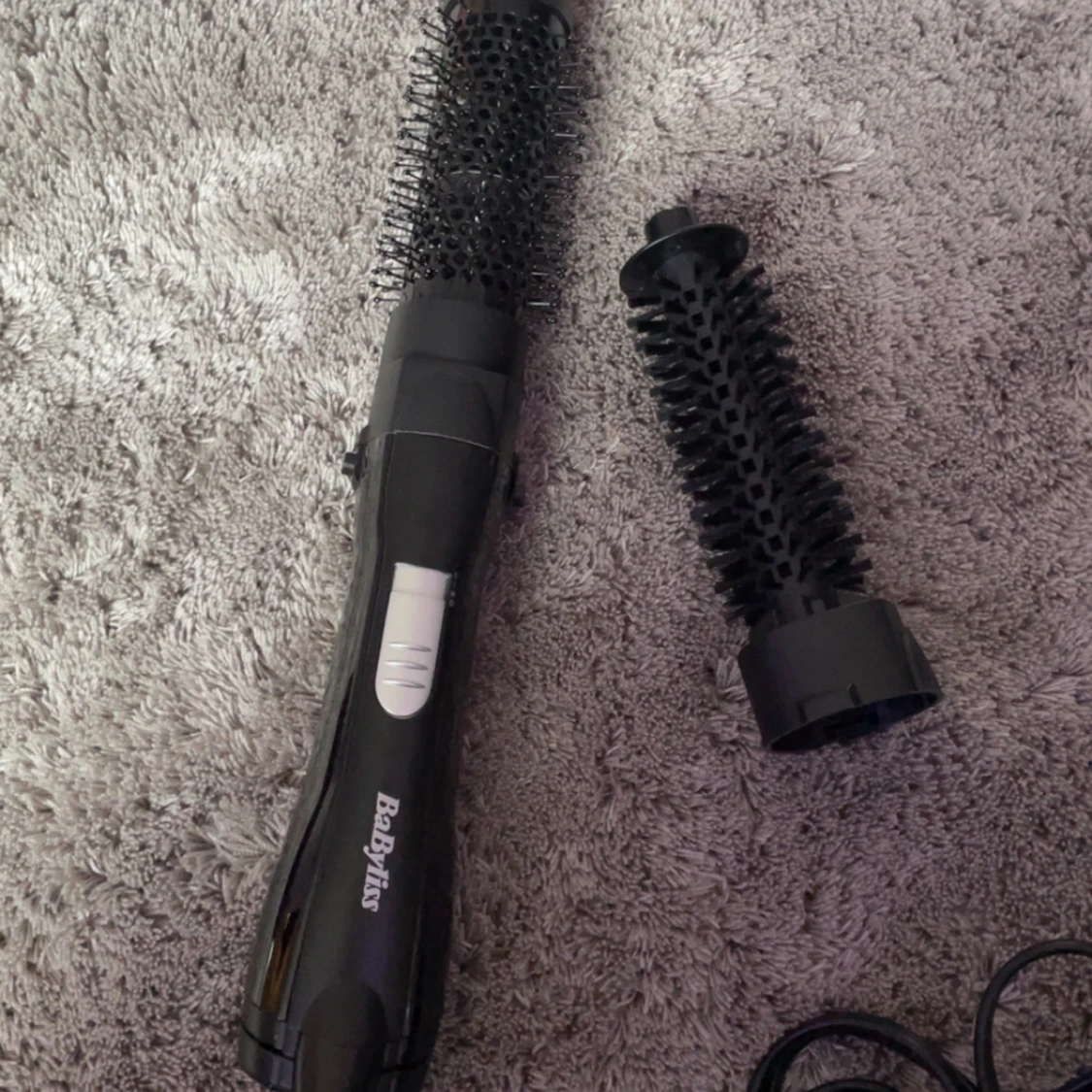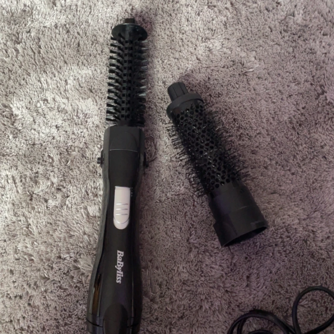 Säljer en BaByliss varmluftsborste med två utbytbara borsthuvuden, för varierande styling möjligheter. 🫧💕 Ger en super fin blow out med volym, men du kan även torka håret med denna! Finns tre olika värme/luft styrkor: 1. sval, lite blås 2. hyfsat varm och medel blås, 3. varm med stark blås. Endast provat. Säljer på grund av ingen användning. Mycket bra skick 💞