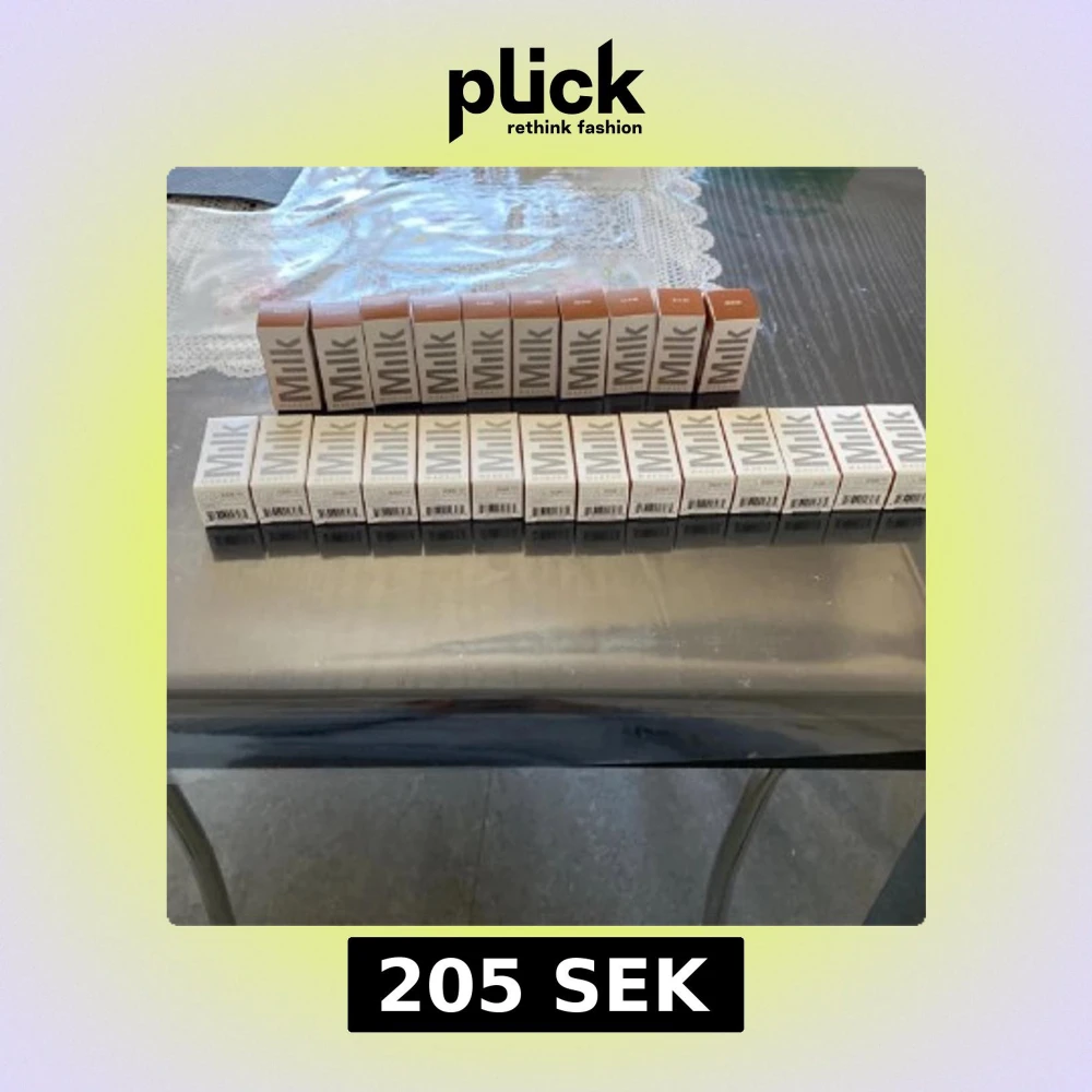Säljer flera produkter från Milk Makeup. Förpackningarna är stilrena med märkets logga i stora bokstäver. Perfekt för dig som älskar smink med modern design.