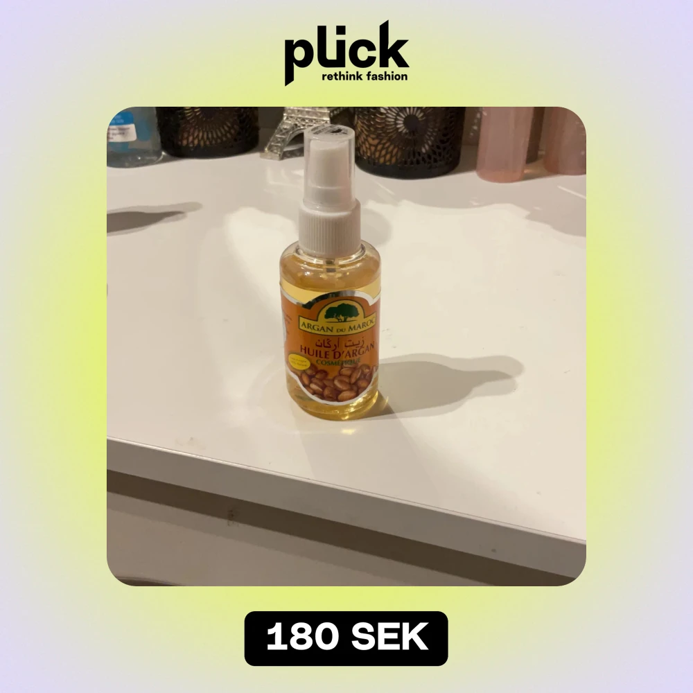 Säljer min helt egna gjorda flaska med Argan du Maroc Huile d'Argan producerad i Morocco! Perfekt för att ge näring och glans till håret eller huden. Kommer i en praktisk sprayflaska för enkel applicering. Innehåller ren arganolja, känd för sina återfuktande egenskaper.