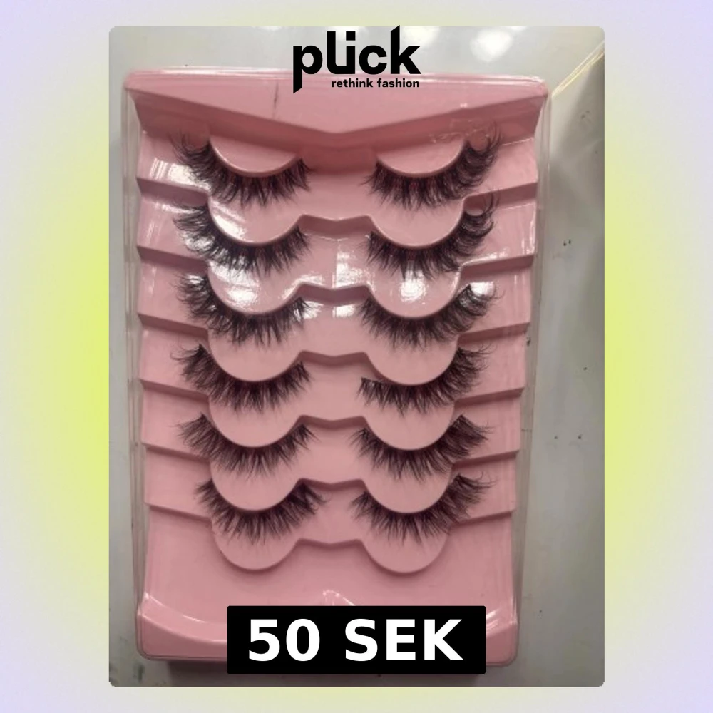 Säljer ett set med fem par fluffiga lösögonfransar i svart. Fransarna kommer i en rosa plastförpackning och har en dramatisk, voluminös look med mjuka, separerade strån för en snygg effekt. Perfekt för dig som vill ha extra långa och fylliga fransar.