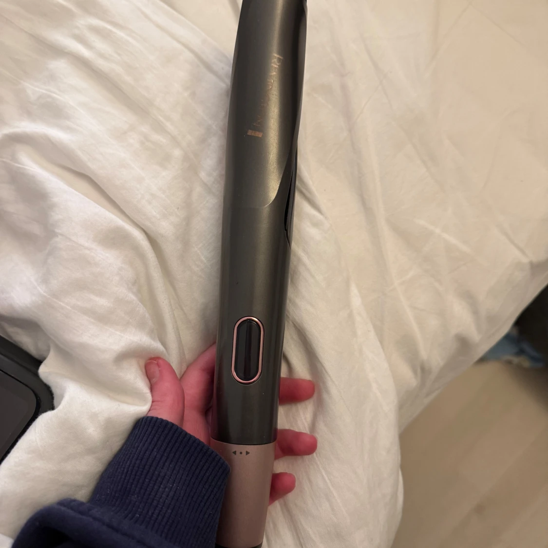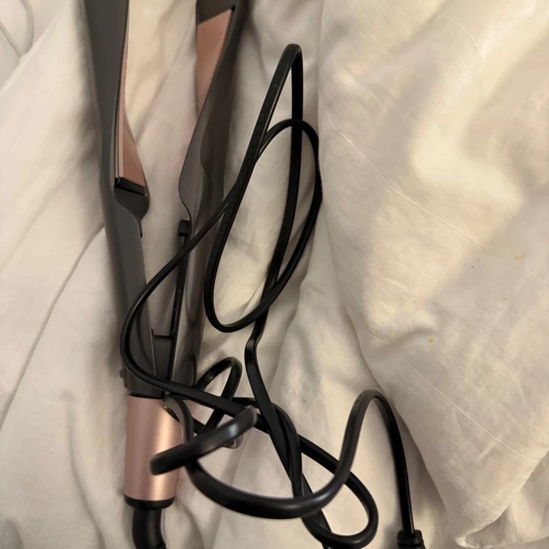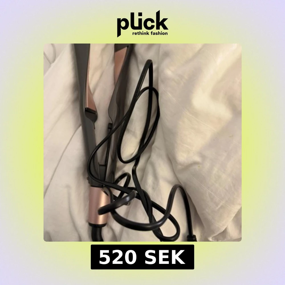 Säljer en stilren plattång från remington i svart och roséguld. Den har en sladd och en smidig design för enkel användning. Perfekt för att styla håret snabbt och effektivt. Formen är perfekt för lockar och gör det enklare att få till fina lockar.
