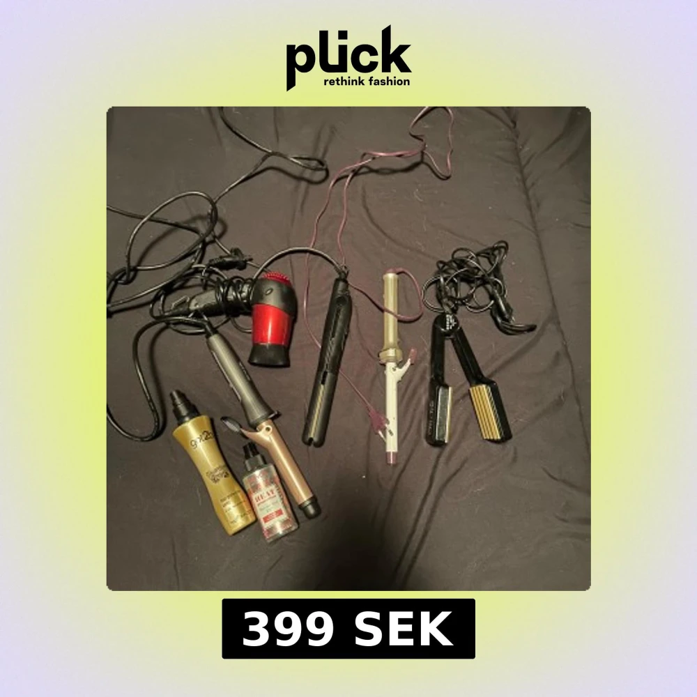 Samling med hårstylingverktyg: röd hårfön, svart plattång, locktång i beige och vit, svart vågtång samt två värmeskyddssprayer från got2b och L'ange. Perfekt för att skapa olika frisyrer och skydda håret mot värme. Säljer allt tillsammans för 399kr elr separat Röd hårfön-30kr 2 plattånger- 70kr styck 2locktånger- 70kr styck 1 vågtång- 70kr 2 värmeskydd ena är nästan helt ny o andra mer än hälften- 100kr för båda
