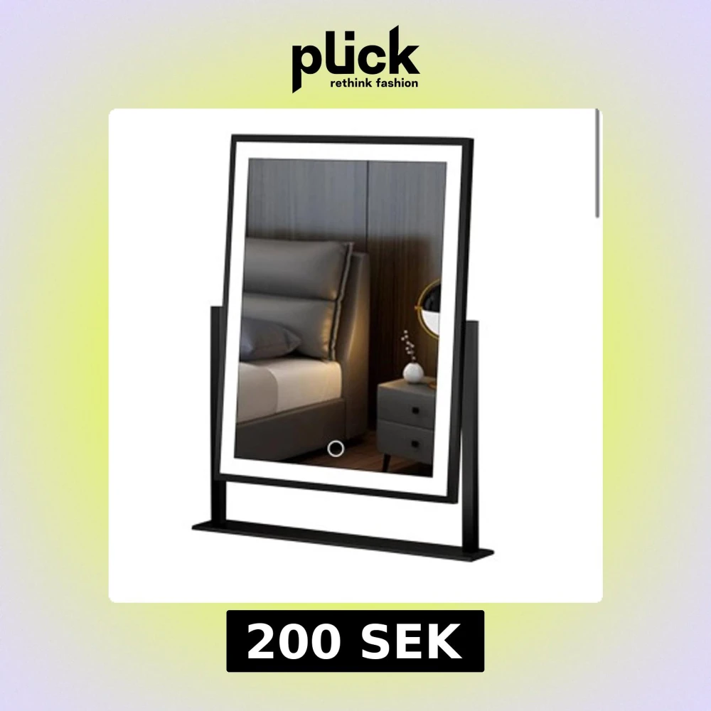 Snygg sminkspegel i svart metall med rektangulär form och inbyggd LED-belysning runt kanten. Spegeln har touch-knapp för att tända och släcka ljuset, perfekt för att få till flawless makeup. Står stabilt på bordet och är lätt att vinkla.