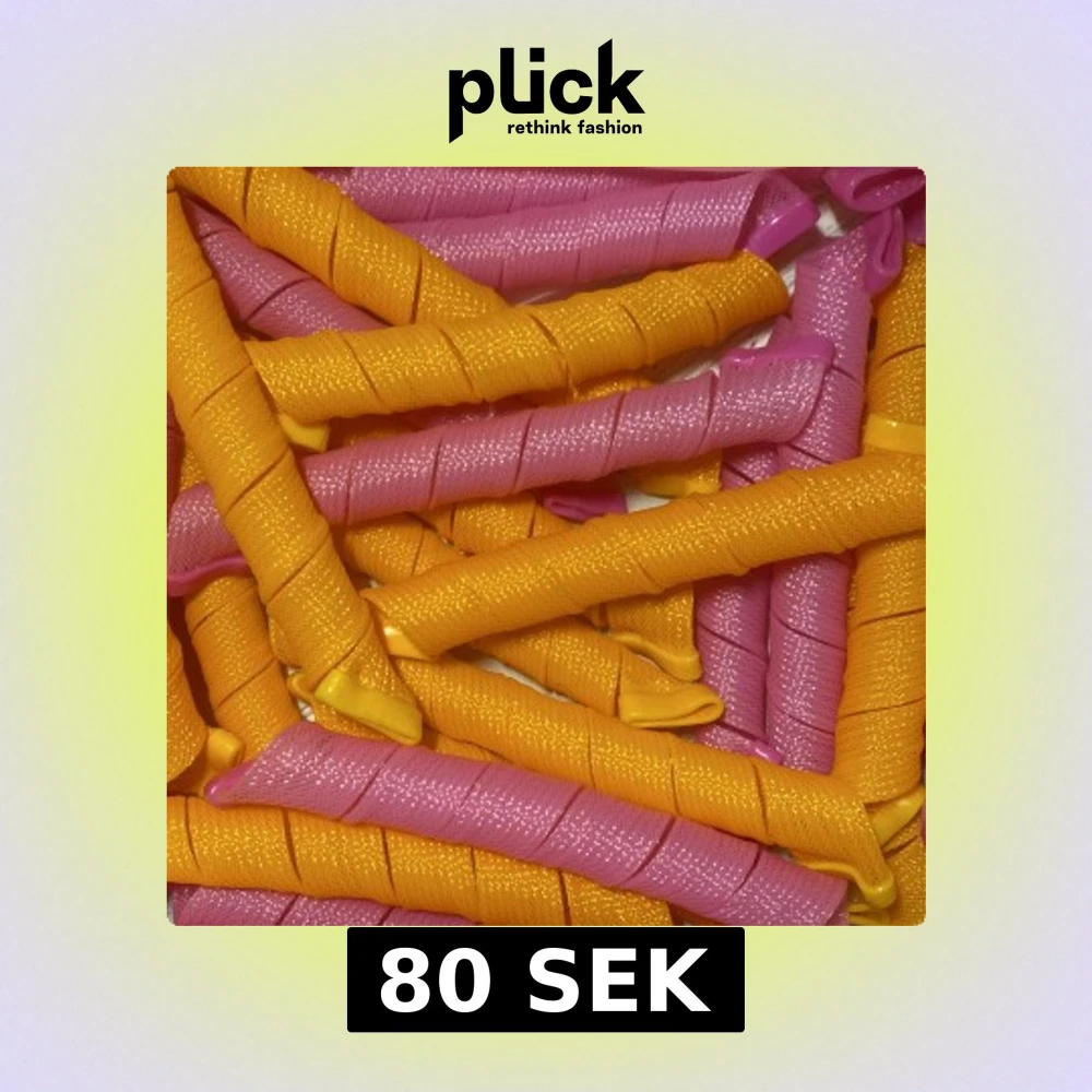 Säljer ett gäng spiralformade hårspolar i rosa och gult. Perfekta för att skapa lockar utan värme. Tillverkade i mjukt plastmaterial med struktur för att hålla håret på plats. Lätta att använda och passar de flesta hårtyper. Verktyget för att få igenom håret kommer självfallet med! 💞