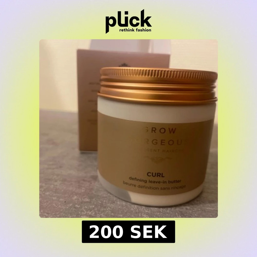 Grow Gorgeous Curl defining leave-in butter, 200 ml. Kommer i en snygg burk med guldig lock och beige etikett. Innehåller bland annat kameliaolja, havrelipid och kakaosmör för att ge definierade, mjuka och frizzfria lockar. Vegansk formula.