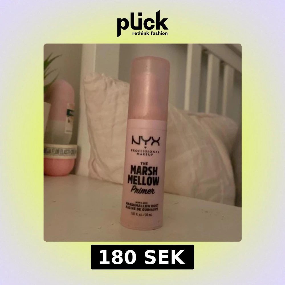 ⚠️skulle kunna tänkas byta men beror på vad⚠️NYX The Marsh Mellow Primer i en ljusrosa flaska. Denna primer innehåller marshmallowrot och kommer i en praktisk pumpflaska på 30 ml. Perfekt för att skapa en jämn bas innan applicering av foundation.