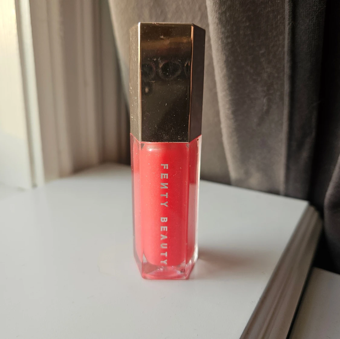 Snyggt läppglans från Fenty Beauty i limited edition färgen dragon mami med glansig finish och lätt skimmer. Kommer i en stilren, sexkantig plastförpackning med silvrigt lock. Perfekt för att ge läpparna en pop av färg och glans. Testad men föredrar mer dova färger🙂