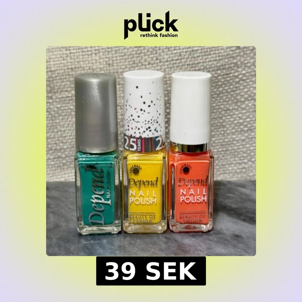 Våriga färger ☀️🌷🐳Säljer tre nagellack från Depend i färgerna turkos, gul och orange. Perfekt för att ge dina naglar en färgglad touch. Varje flaska innehåller 5 ml och har en smidig applikator för enkel applicering. Nypris 25-35:- st. Aldrig använda.