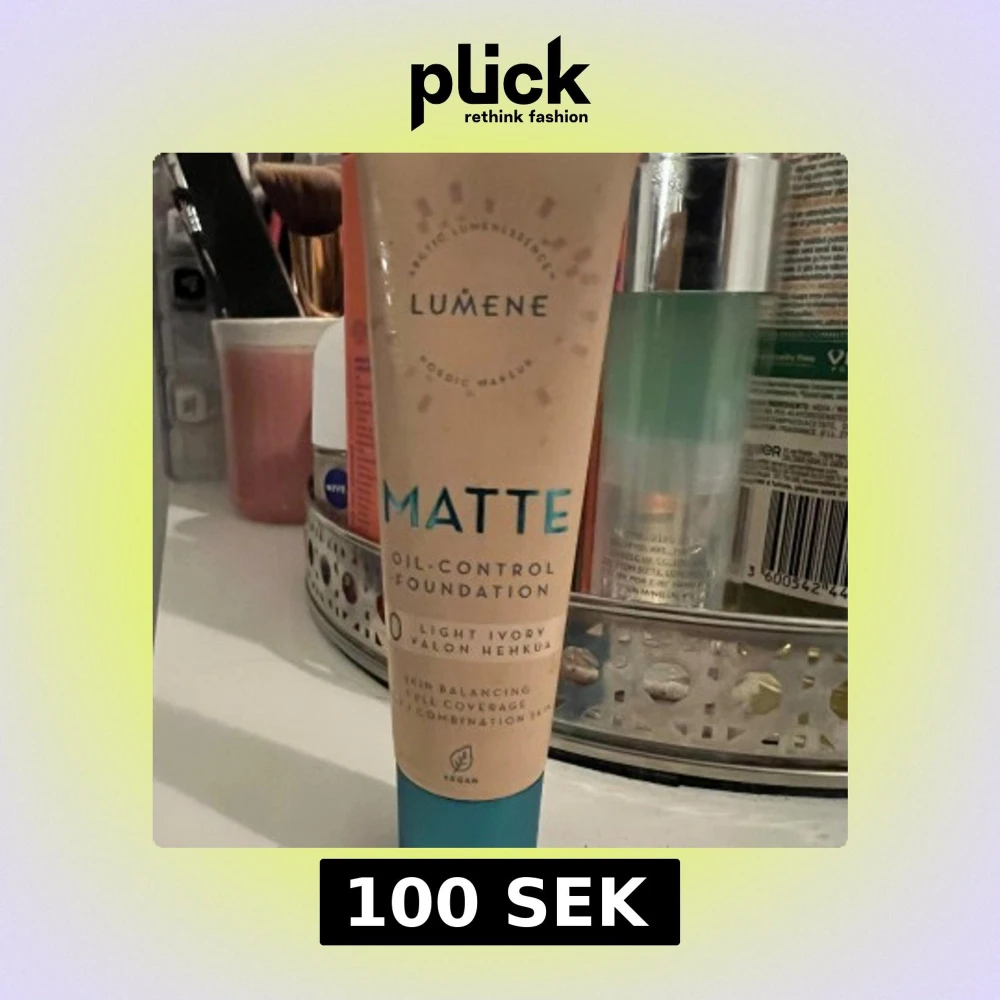 Säljer foundation från Lumene i nyansen Light Ivory. Ger en matt finish och är oljekontrollerande, perfekt för kombinerad hy, full täckande, vegansk formula. Oöppnad, ord pris : 150-180kr
