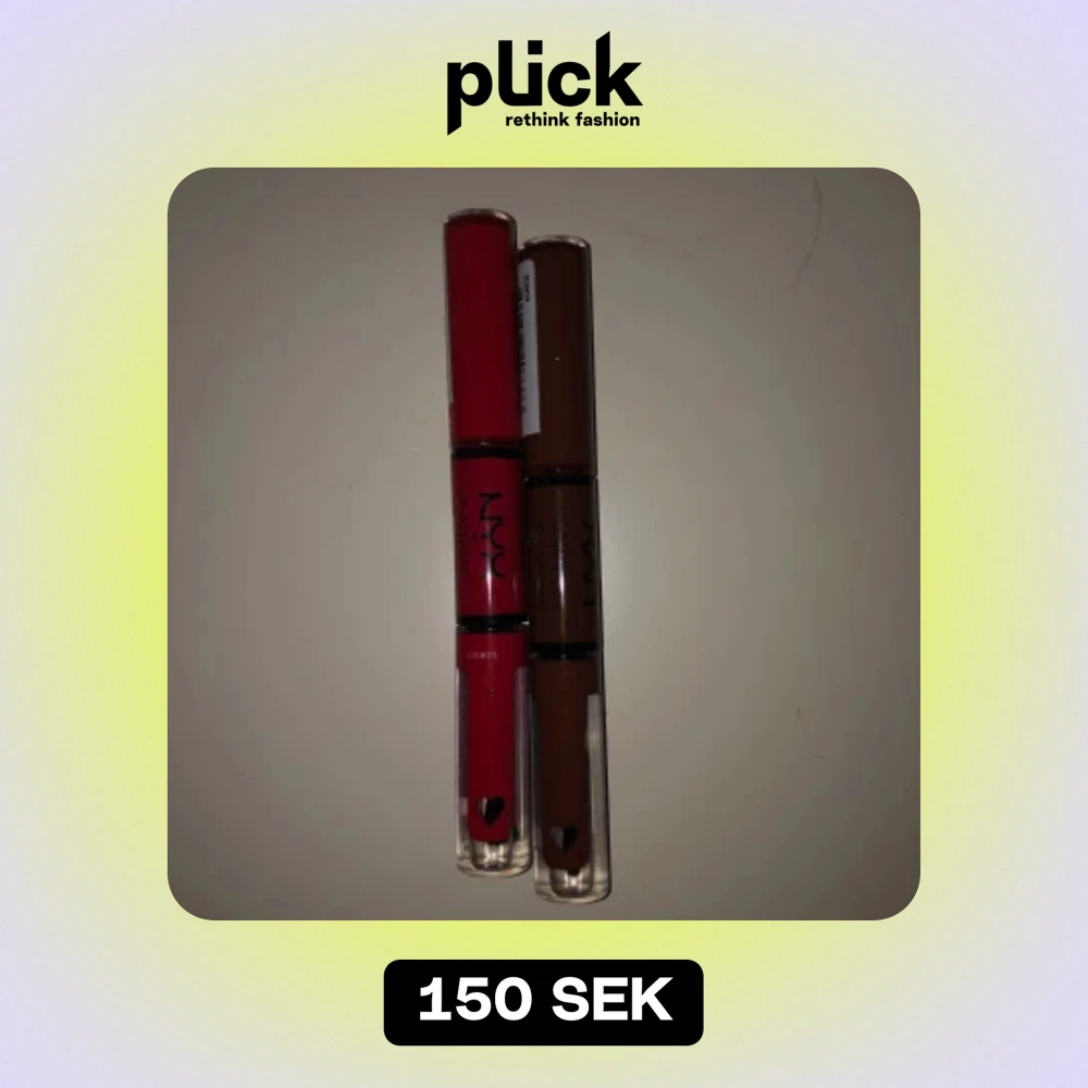 Oanvända dubbelsidiga nyx lippstick med shine. Pigmenterad och hållbara färge med ett glansigt överdrag. Båda två ingår för priset.