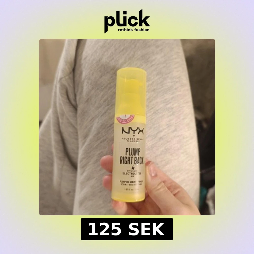 NYX Plump Right Back är en primer med plumping-effekt och elektrolyter. Kommer i en smidig pumpflaska med gul plastlock och detaljer. Perfekt för att ge huden extra fukt och skapa en jämn bas innan sminket. Innehåller 30 ml.