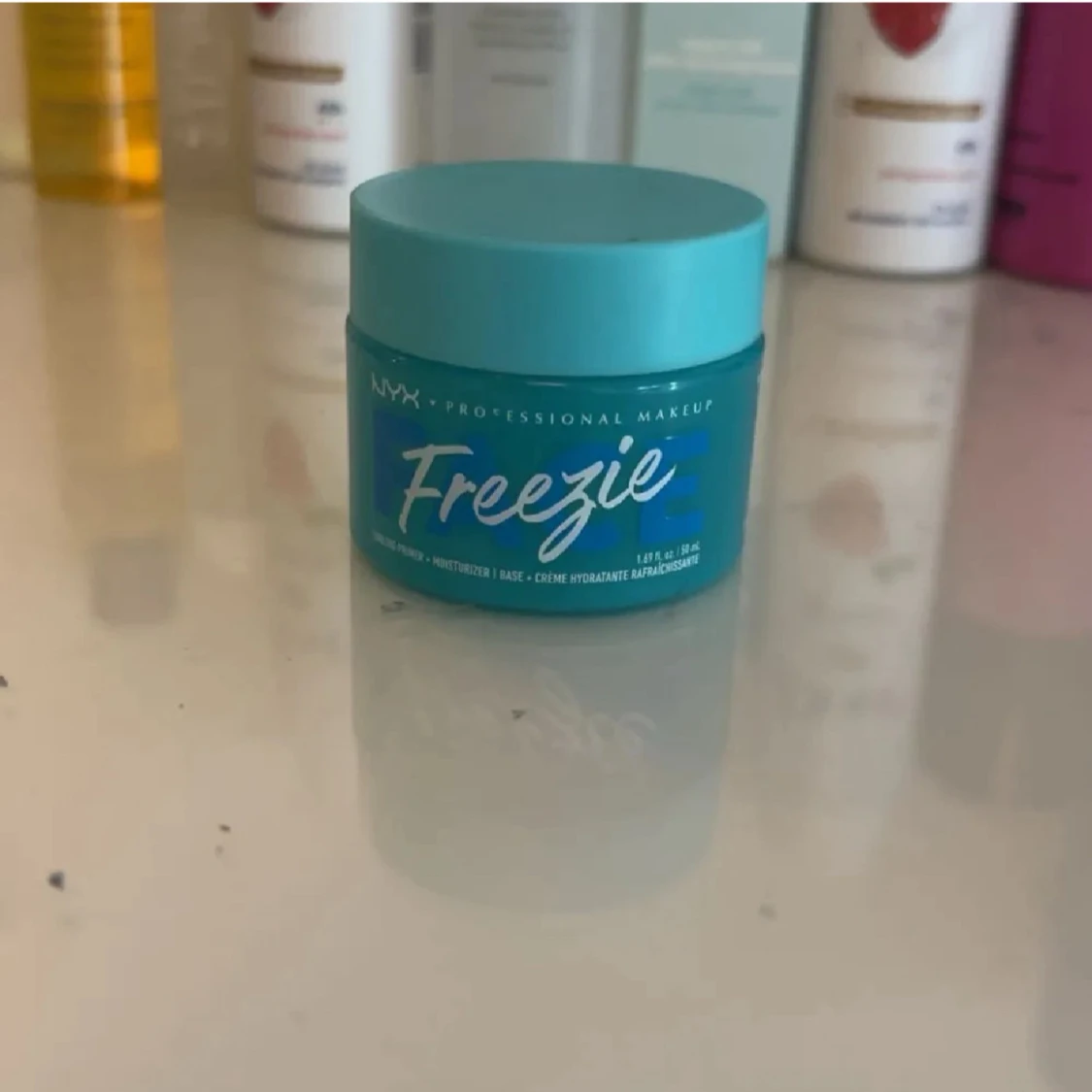NYX Freezie är en blå burk med 50 ml kylande primer och fuktkräm i gel-form. Produkten är genomskinlig och har en fräsch känsla, perfekt som bas innan smink. Snygg turkos förpackning i plast med skruvlock.