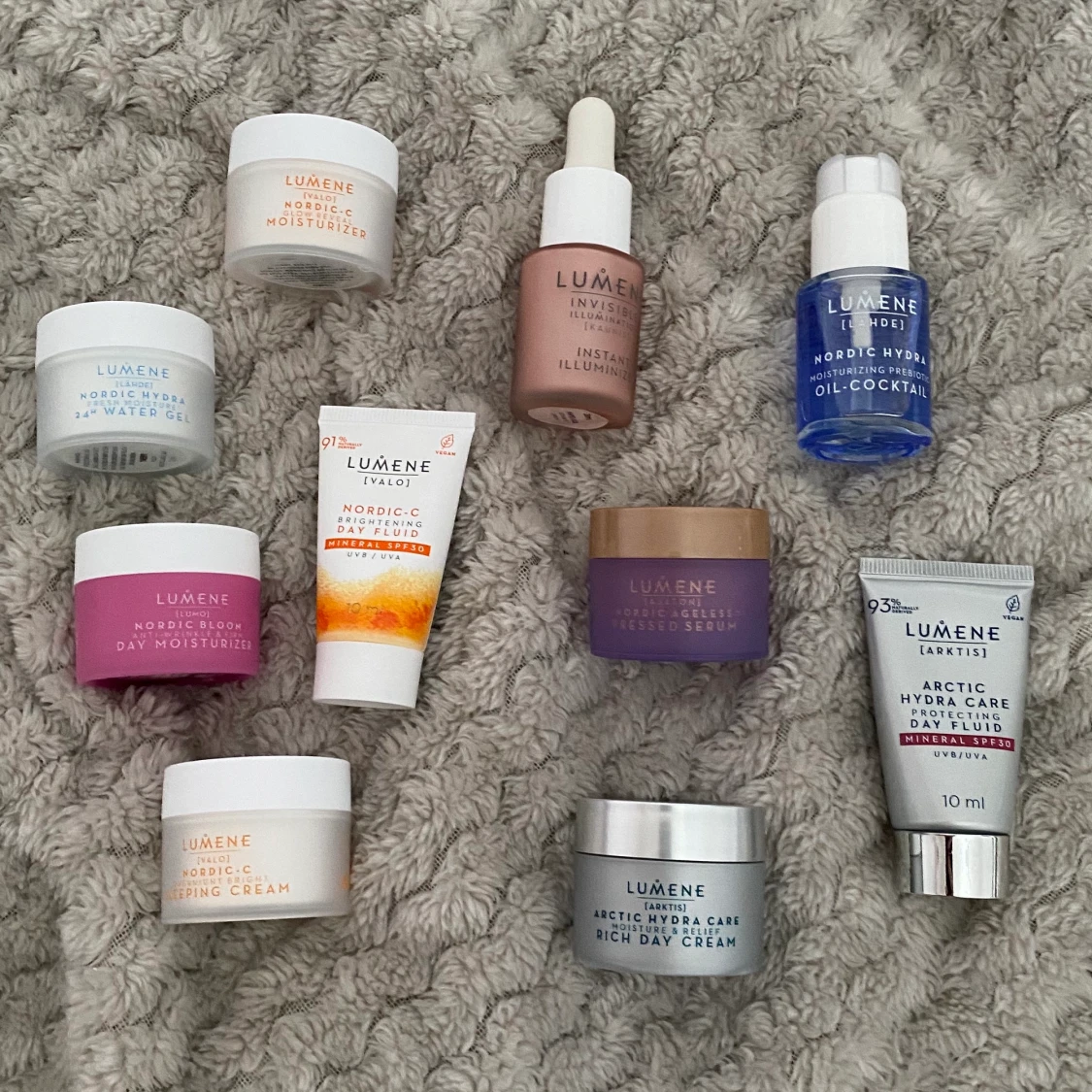 Säljer 10 stycken helt oanvända (vilken kan ses på andra bilden) minisize-produkter från Lumene. Älskar märket men då jag redan har produkter som jag gillar kommer de inte komma till användning. Perfekt om du vill prova på nytt eller ha i väskan!