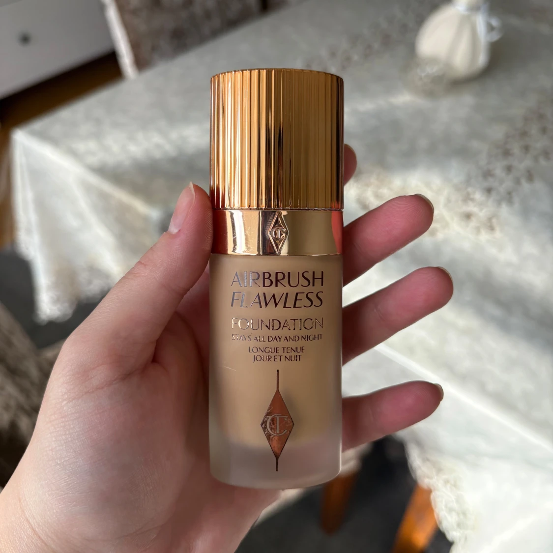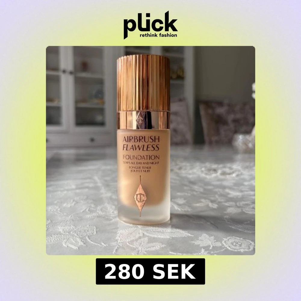Charlotte Tilbury Airbrush Flawless Foundation 30 ml. Waterproof och Skincare-infused. Mycket bra skick. Använd men mycket kvar i flaskan, ca 85-80%. Färg: 7 Neutral. Nypris: 615 kr på Kicks Älskar produkten men jag har flera liknande, vill ge plats åt annat. Priset kan diskuteras vid snabb affär. Säljer flera smink, smycken osv av kända märken.