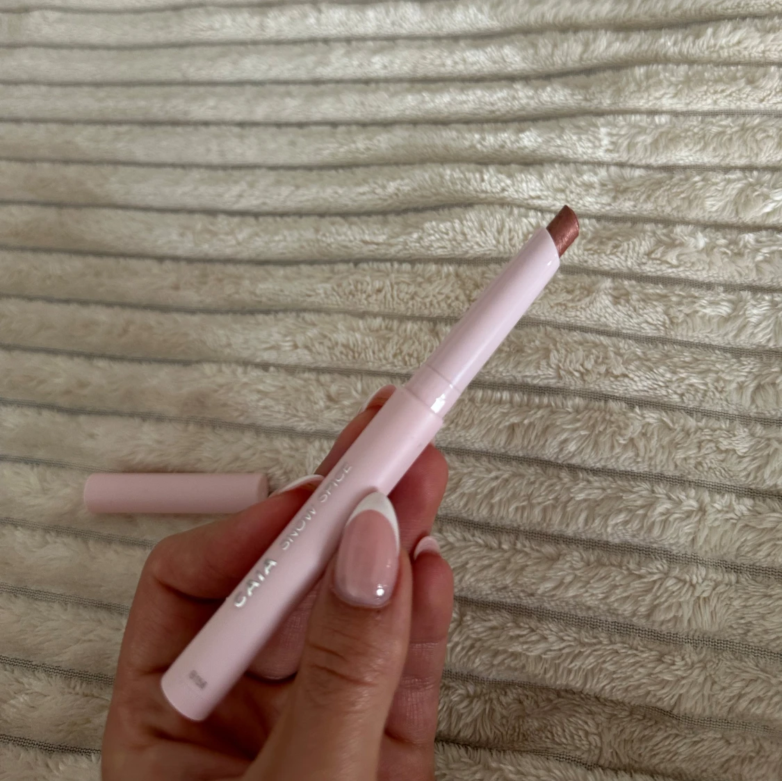 Krämigt ögonskuggsstift från CAIA i nyansen Snow Spice. Pennan har en ljusrosa hylsa och själva skuggan är skimrande koppar-bronsig. Perfekt för att snabbt skapa en snygg ögonlook med metallisk finish. Aldrig testad, har tyvärr inte kartongen kvar!