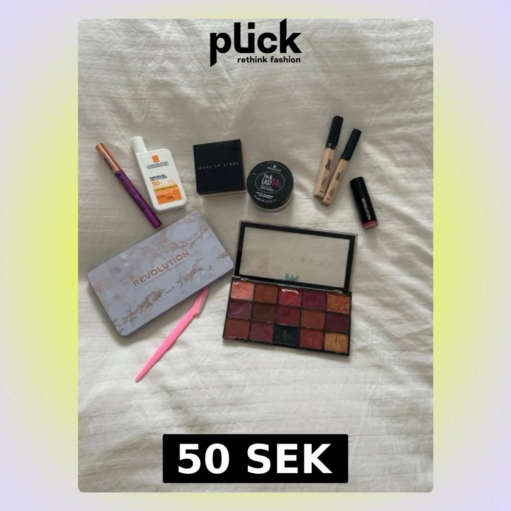 Säljer en ögonskuggspalett från Revolution med 15 olika nyanser i varma och neutrala toner, allt från nude till rödbrun och guld. Paletten har en snygg marmorerad design och inbyggd spegel, perfekt för att skapa olika looks.