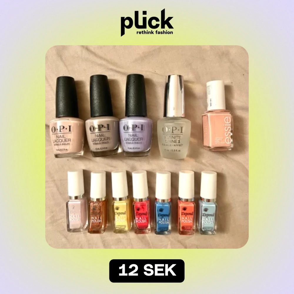 Nagellack från Depend, OPI och Essie i olika färger. Depend: 12 kr/st. OPI: 35 kr/st. Essie: 20 kr. Köp alla för 120 kr!🩷