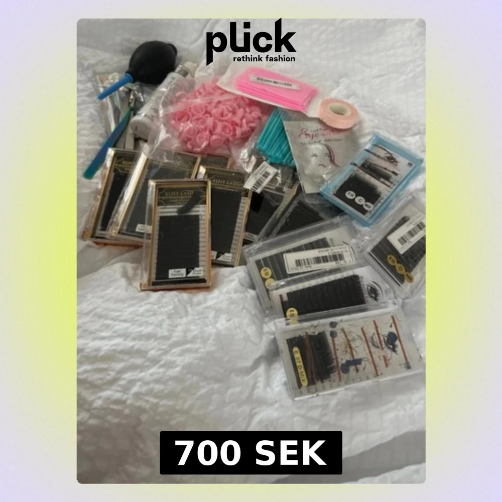 Säljer ett komplett kit med svarta lösögonfransar i olika längder och tjocklekar, fransborstar, applikatorer, limringar, tejp och pincetter. Perfekt för fransförlängning och styling. Flera förpackningar och verktyg ingår.