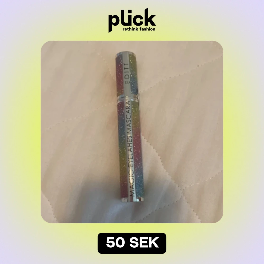 En mascara med en glittrig, flerfärgad förpackning från märket Edit. Produkten är designad för att ge magiska ögonfransar.