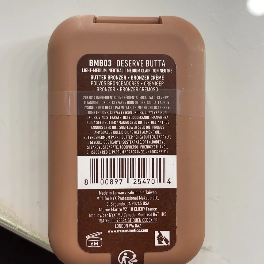NYX Professional Makeup Buttermelt Bronzer i nyansen 'Deserve Butta'. En krämig bronzer med en mjuk och smörig konsistens, perfekt för att ge en naturlig solkysst look. Förpackningen är kompakt och lätt att ta med sig. Använt den en gång för och testa men tyvärr var det inte i min färg.