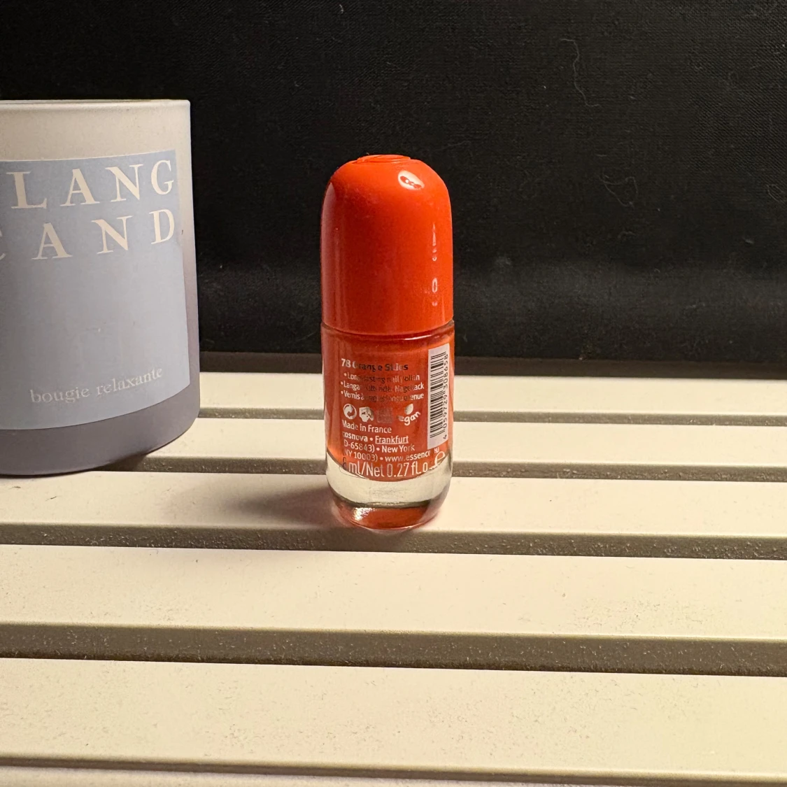 Essence Shine Last & Go! gel nagellack i en intensiv orange nyans. Kommer i en smidig glasflaska med rund plastkork. Perfekt för dig som vill ha färgstarka naglar med glansig finish. Nyansen heter 73 'Candy Sills'.