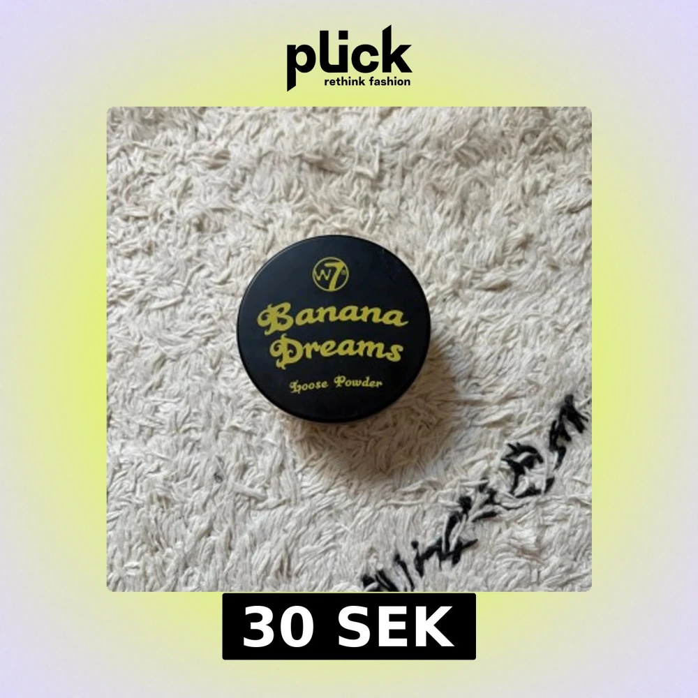 Banana Dreams Loose Powder från W7 är ett transparent löspuder i en ljusgul nyans. Perfekt för att fixera sminket och ge en matt finish. Kommer i en rund plastburk med svart lock och gul text. Innehåller 20g puder.