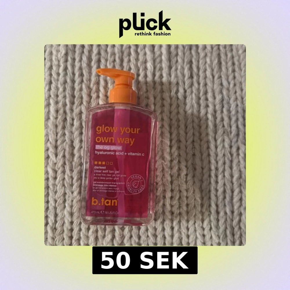 Transparent brun utan sol gel med hyaluronsyra och vitamin C från b.tan. Pumpflaska i orange och rosa, 473 ml. Ger en djup gyllene glow och är vegansk samt cruelty free. Perfekt för dig som vill ha intensiv solkysst look. Använd en gång