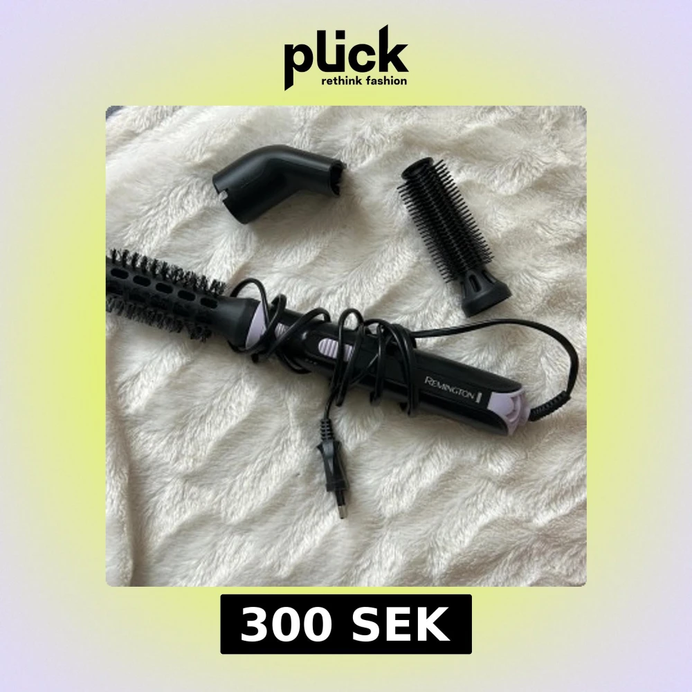 Säljer en Remington varmluftsborste med två utbytbara tillbehör. Perfekt för att styla håret med volym och lockar. Borsten är svart med lila detaljer och har en sladd för enkel användning. Nypris 550kr!