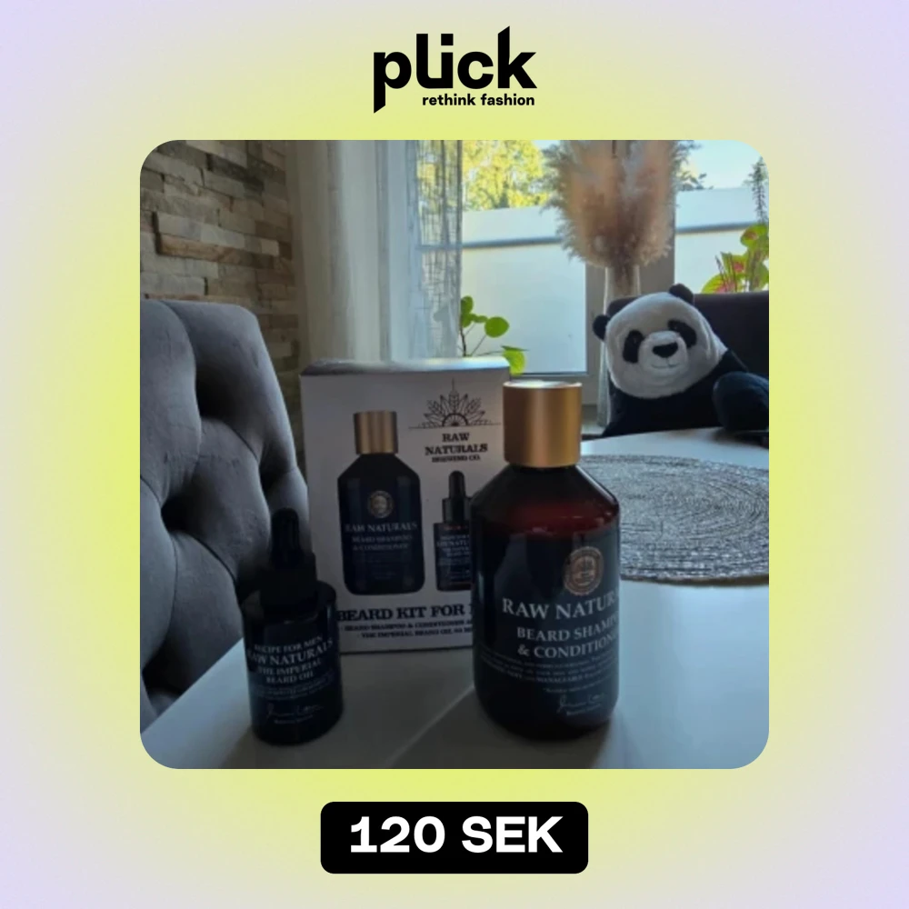 Säljer ett skäggvårdskit från Raw Naturals Brewing Co. Kitet innehåller ett skäggschampo och balsam samt en skäggolja. Perfekt för att hålla skägget rent och mjukt. Flaskorna har en stilren design med svart etikett och guldiga detaljer. Perfekt present till någon med skägg eller för egen användning!
