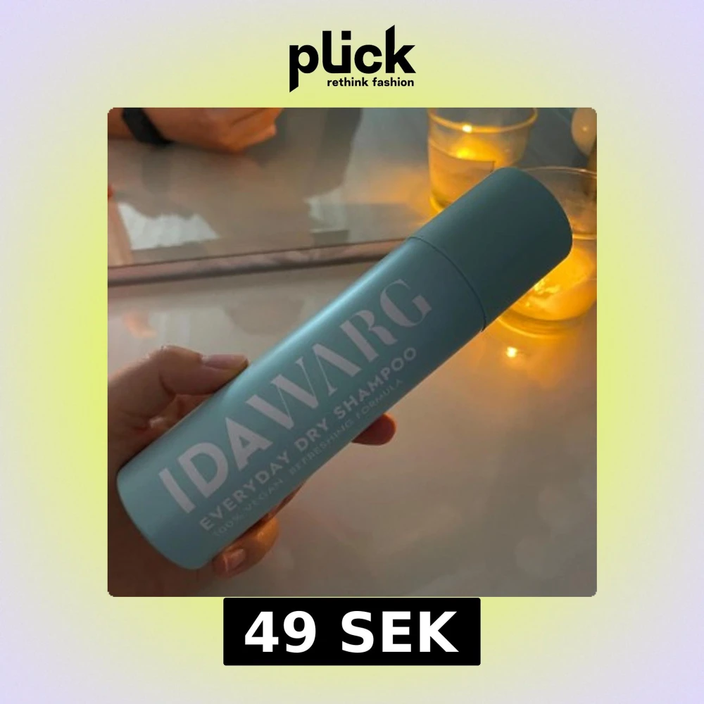 Bilden visar en flaska Ida Warg Everyday Dry Shampoo, ett torrschampo för daglig användning. Produkten är 100% vegansk och har en uppfriskande formula. Flaskan ser ut att vara i gott skick utan synliga skador eller slitage.