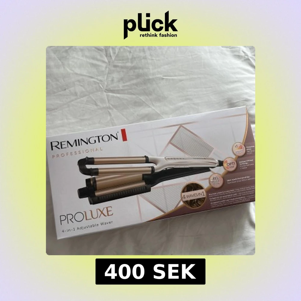 Remington ProLuxe 4-in-1 Adjustable Waver med snygg design i guld och vitt. Skapar fyra olika vågiga hårstilar med justerbar temperatur och OptiHeat-teknologi. Perfekt för dig som vill ha salongsvågor hemma. Lång sladd och digital display.