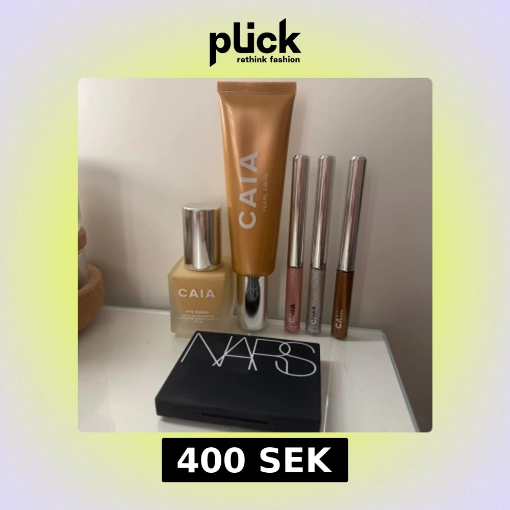 Säljer ett sminkpaket med produkter från CAIA och NARS. I paketet ingår foundation, flytande highlighter, tre flytande ögonskuggor från CAIA och en ögonskuggspalett från NARS. Foundation nyans 2W. Alla är endast testade en gång. Förutom de flytande ögonskuggor a som inte är testade alls.