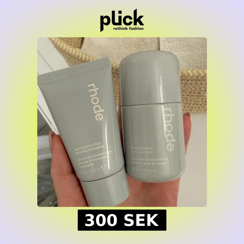 Säljer ett set med Rhode Barrier Butter 40ml och Glazing Milk 65ml.Perfekt för dig som vill ha glow och återfuktad hud. Använd ca 3-5 gånger