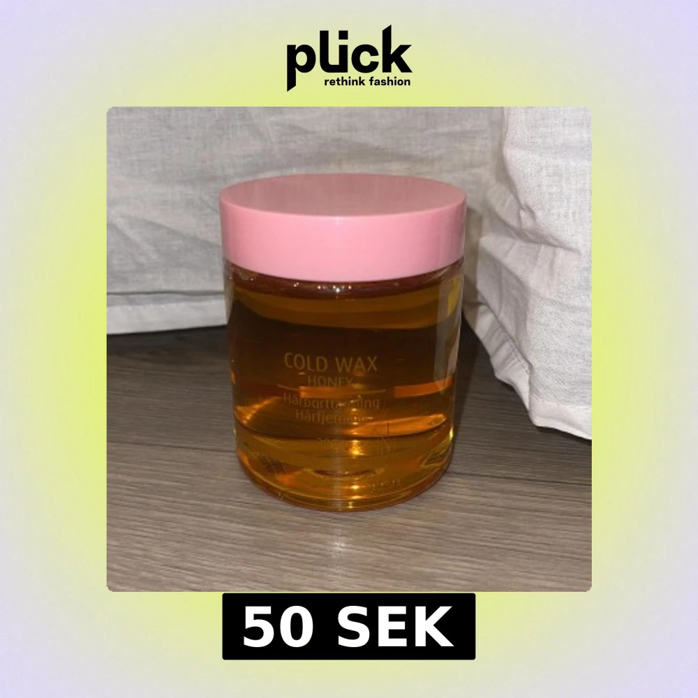 Honungsvax som inte behövs värmas. Inte helt full, se mängd på bild 2. Lite kladdig där man skruvar på locket då lite av vaxet råkat hamna där när jag testade lite. Perfekt för vaxning hemma❤️