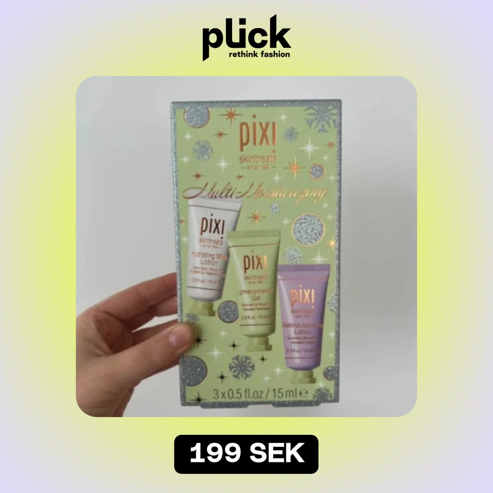 Säljer ett helt nytt, oöppnat set med tre återfuktande produkter från Pixi. Setet innehåller Hydrating Milky Lotion, pHenomenal Gel och Retinol Jasmine Lotion, alla i 15 ml storlek. Perfekt för att hålla huden återfuktad och fräsch. Kommer i en fin förpackning med glitterdetaljer, perfekt som present eller för egen användning.