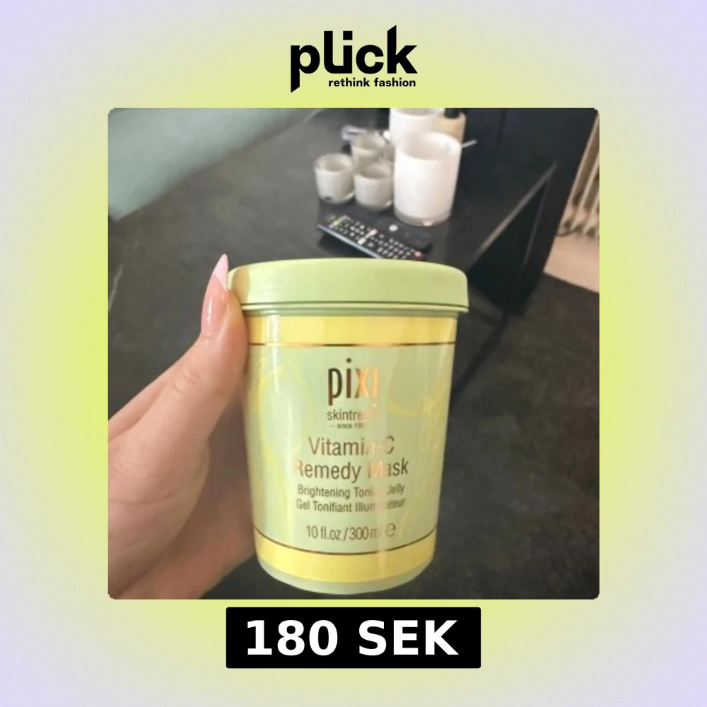 Fräsch ansiktsmask från Pixi med vitamin C som ger glow och lyster. Masken är en ljusgul gel i en mintgrön burk med gulddetaljer. Perfekt för dig som vill boosta huden med fukt och fräschör.