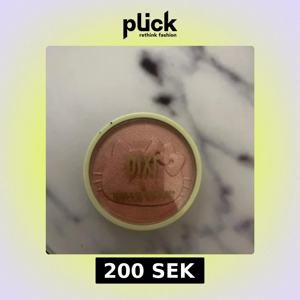 Söt rouge från Pixi x Hello Kitty-kollektionen i nyansen Friendly Blush. Kommer i en rund, ljusgrön dosa med Hello Kitty-motiv på locket. Ger ett glowigt, persikorosa skimmer till kinderna. Perfekt för dig som gillar kawaii och vill ha en fräsch look. Är helt oanvänd. Nypris 270 kr
