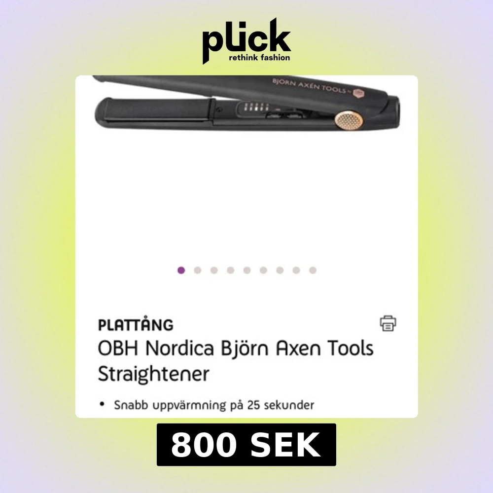 Svart plattång från Björn Axén Tools i samarbete med OBH Nordica. Plattången har en smal och stilren design med keramiska plattor och guldiga detaljer. Perfekt för att styla och räta ut håret snabbt och smidigt.