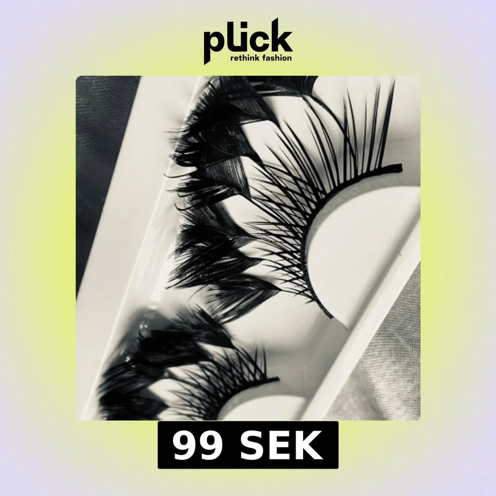 ett par riktigt dramatiska lösögonfransar i svart med fjäderliknande design och extra långa, spretiga strån. Fransarna har en unik form med både täta och glesa partier för en maxad effekt. Perfekta för dig som vill sticka ut och skapa en riktigt cool look.