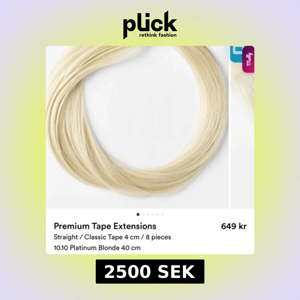 Jag säljer mitt löshår från rapunzel of sweden, det är premium tape extenions i färgen platium blond i längden 40cm, vissa är inklippta ungefär 5cm . Håret i sig är väldigt omhändertaget så absolut i fint skick! Vid rätt vårdning så håller håret upp till 1 år och jag köpte detta i somras! . Jag köpte allt för ungefär 4600💞💞Lite mer än 7 packet så ungefär 130gram hår