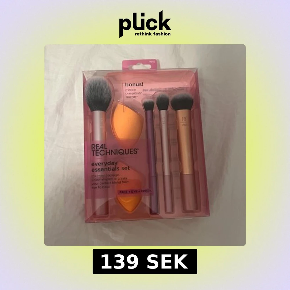 Komplett sminkset från Real Techniques med fyra borstar samt två sponges. Veganskt och cruelty free.. Helt oöppnade såklart