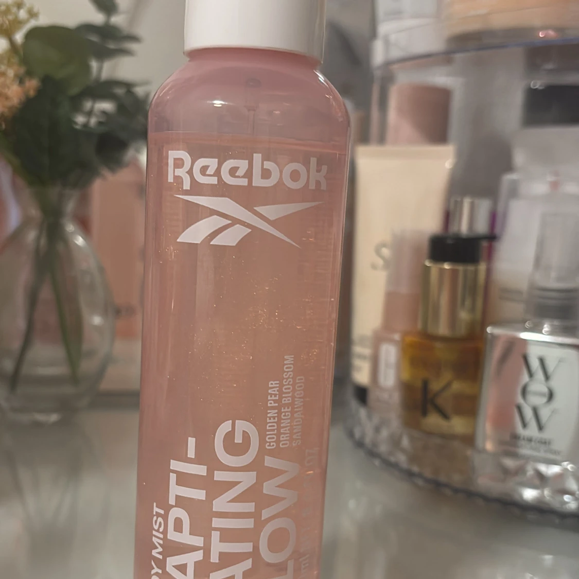 Fräsch body mist från Reebok i en rosa plastflaska med vitt lock. Perfekt för att ge huden en återfuktande glow och fräsch känsla under dagen.