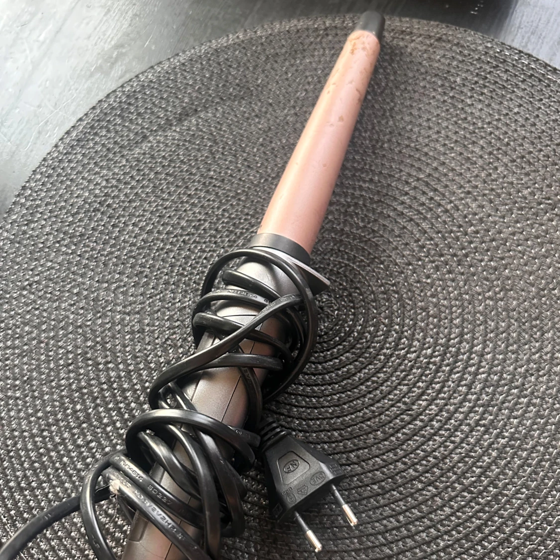 En locktång från remington. Den svarta delen är lös, men själva locktången fungerar just som den ska, man får fina lockar och var supernöjd men den tills den svarta delen lossnade. Man kan säkert limma tillbaka den men har köpt en annan istället. Där av säljer den så billigt. Den är smalare vid tippen å blir bredare längre ner.