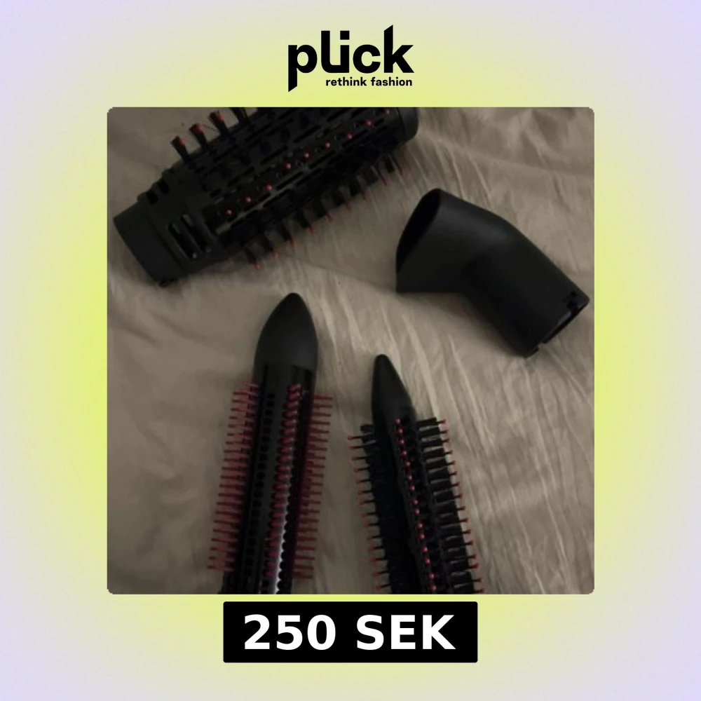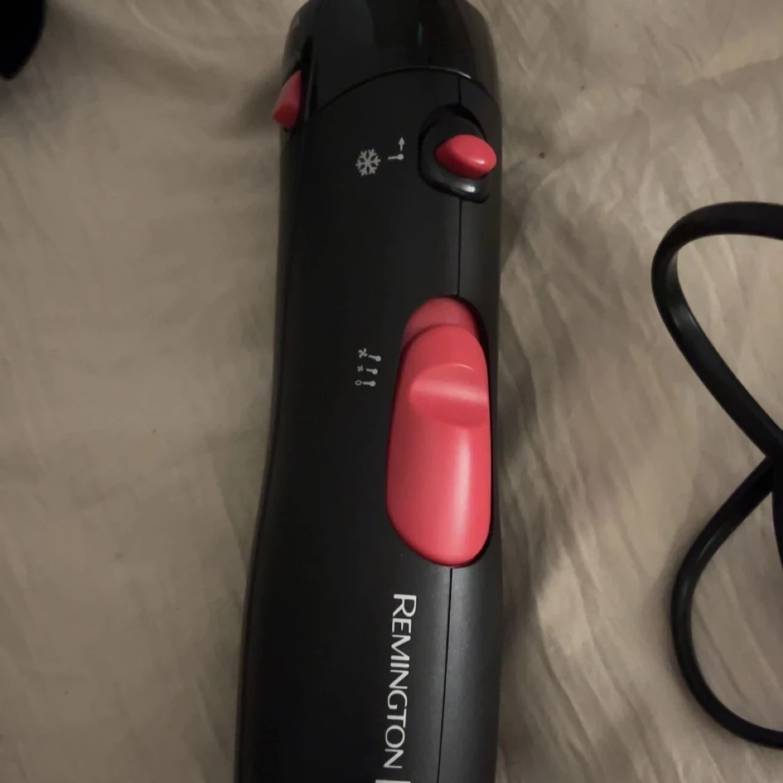 Säljer en Remington varmluftsborste med flera utbytbara borsthuvuden och stylingmunstycke. Svart och rosa design, perfekt för att styla och forma håret. Medföljer original förvaringspåse.