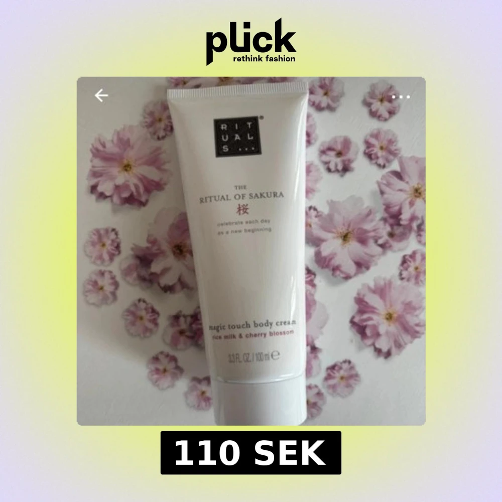 En lyxig body cream från Rituals i serien The Ritual of Sakura. Innehåller ris-mjölk och körsbärsblomma som ger en söt och fräsch doft. Kommer i en vit tub på 100 ml med rosa detaljer. Perfekt för dig som vill ha mjuk och återfuktad hud.
