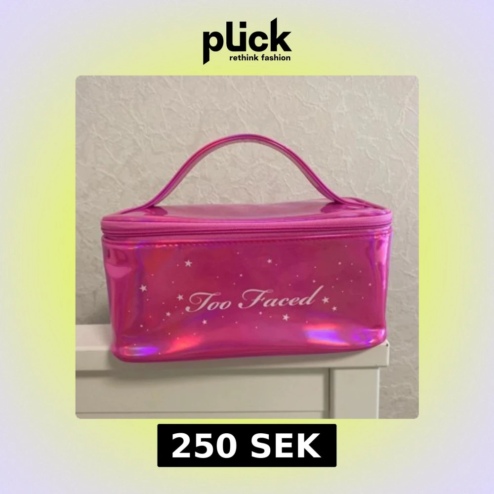 Superfin rosa necessär från Too Faced med holografisk finish och vita stjärndetaljer. Väskan har ett praktiskt handtag upptill och stängs med dragkedja. Perfekt för smink eller småprylar, och den är tillverkad i glansig syntet.