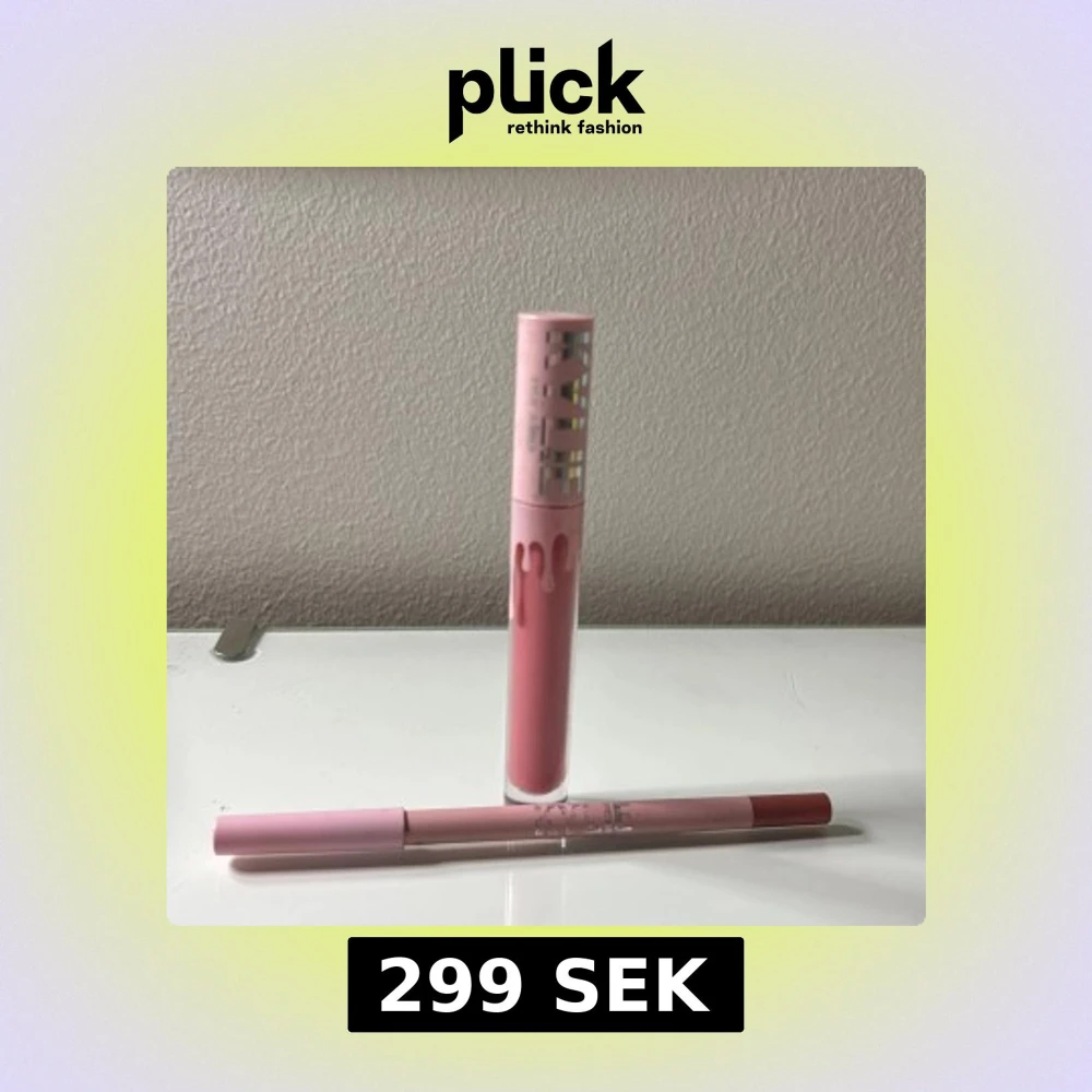 Säljer ett Kylie Jenner läppkit i färgen Snow Way Bae. Kitet innehåller ett flytande läppstift och en matchande läppenna i en mjuk, rosabrun nyans. Båda har snygg rosa förpackning med silvriga detaljer och klassisk droppdesign. Perfekt för att skapa fylliga, definierade läppar.