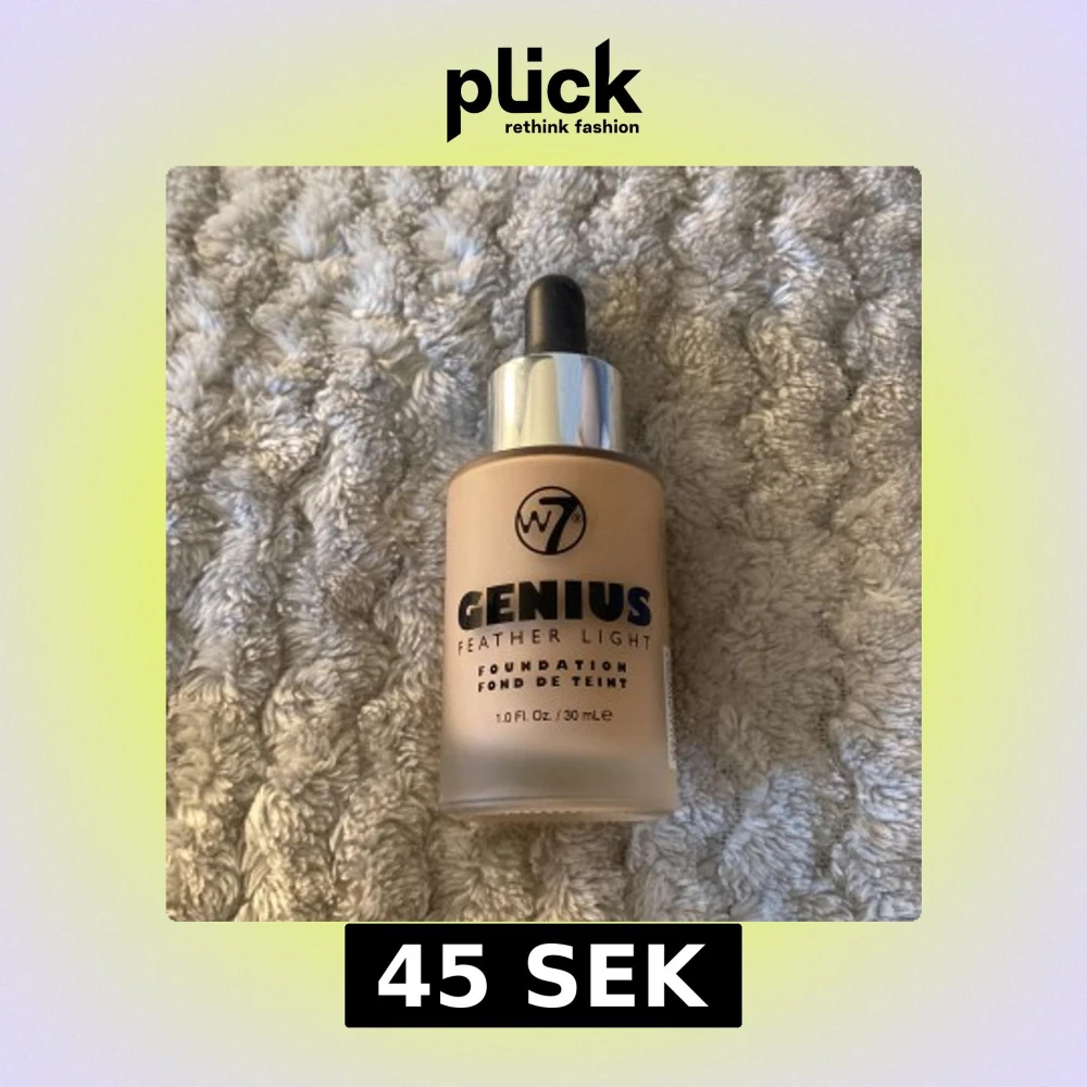 W7 Genius Feather Light Foundation i en ljus beige nyans. Knappast anvĂ€nd đ©·